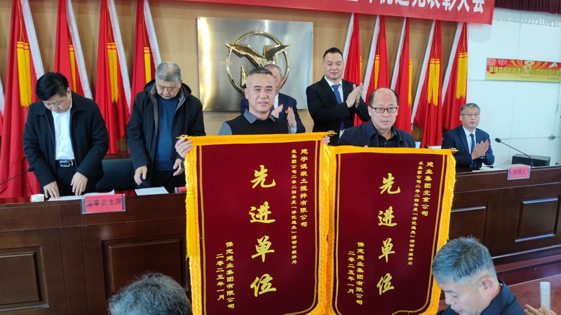 集團(tuán)領(lǐng)導(dǎo)向獲獎(jiǎng)先進(jìn)單位、先進(jìn)個(gè)人頒發(fā)錦旗和證書。
